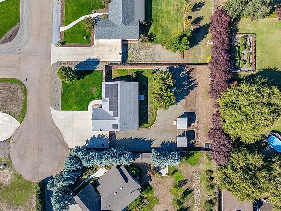 Very, very nice 3BR/2BA home on 1/2 acre lot in established 14 unit subdivision. 2-car attached garage. Concrete driveway with lots of additional concrete parking. Open floorplan with 2 bedrooms on one side and master suite on the other side. Beautiful black granite kitchen countertops with high gloss black tile floor and custom white cabinets. White quartz counters in bathrooms. Master bath has separate garden tub, walk-in shower & double sinks. Plenty of storage with extra shelving and built in shoe boxes. Slider leads to spacious covered rear deck with a free standing hot tub that is included with sale. Refrigerator is also included. Two sheds and additional gravel parking in rear. Lots of room for RV parking. OWNED SOLAR provides all, or almost all, of the electrical power. Annual true-up has run the current owners from about $100.00 to sometimes even a credit. See floorplan in photos. Los Molinos is centrally located, providing an easy commute to Chico or Red Bluff as well as easy I-5 access.