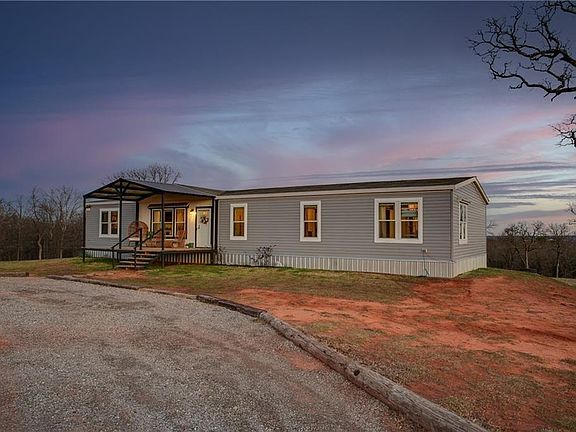 Qualifies for 0% Down USDA Financing. Also Eligible for FHA and VA Loans. Experience peaceful country living on 10 beautiful acres under wide open Oklahoma skies with this 2019 custom built home that is completely move in ready. The sellers have already taken care of key upgrades, including an in ground storm shelter for safety and peace of mind.