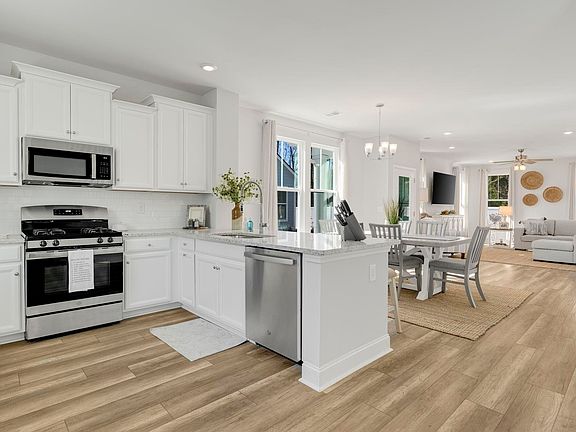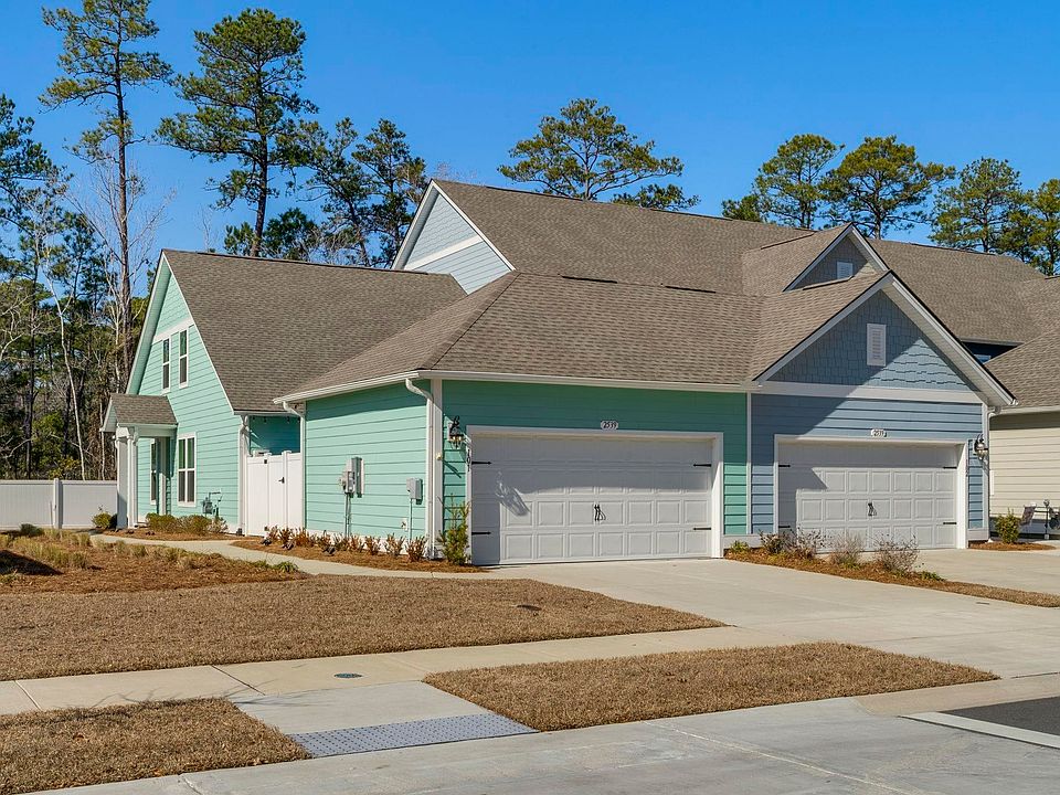 This charming 3 bedroom, 2.5 bath townhome is in Belle Harbor, a neighborhood just on the edges of the Market Common area. It is an end unit, with extra windows and the front door is on the side and the 2-car garage is out front. Across the street is a nice planned green space, in which dog walking is easy. As you walk into the front door, you are standing in a large open space that has the living area to the left, and dining and kitchen to your right. The entire downstairs has warm tones Luxury Vinyl Plank, except main bath is tiled. Off the living space the spacious main suite with includes a walk-in shower, double vanity, tiled floors, granite countertops and huge closet. Beautiful new seiing fans have been added throughout the home. There is the laundry room and a 1/2 bath near the back door, which leads to the garage and private locked fenced patio. The patio a a large storage closet for any pool and beach equipment. Upstairs has 2 spacious bedrooms, large bath and a bonus flex space. This property is a smart home and comes with an incredible security system Due to the close proximity of Market Commons Belle Harbor has a back entrance where golf carts can ride a short distance to that area. Schedule a visit today.