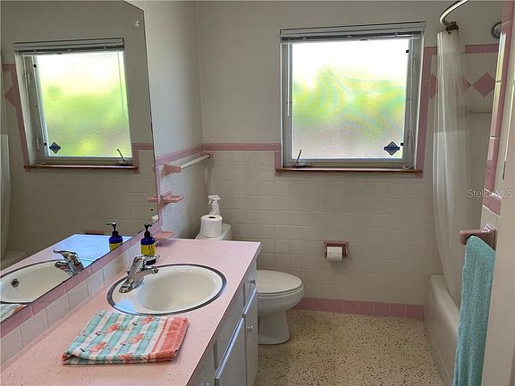 UNIQUE 2 bedroom, 2 bathroom, 1 car garage with circular driveway home located in Sarasota's popular Gulf Gate community. Gulf Gate is situated near anything you may want or need; Siesta Key beach, shopping, entertainment, bike trails and even its own library. This spectacular home has a large 24x23 open concept of the kitchen, great room and Florida room with an exquisite view of the Florida friendly butterfly garden and all under A/C. The homeowner, a master gardener, has made this one of a kind with fruit trees, other exotic plants along with a fire pit. Off of the garden, you can relax and lose track of time on the 29x20 screened-in patio made of solid wood. There is also a jacuzzi and outdoor shower. The entire property is enclosed in a 6 ft wood fence making it pet friendly and extremely private. The original 1960's terrazzo flooring from Cuba has distinctive emerald and coral stone throughout. Carpet has been laid on top of the terrazzo in the bedrooms but can easily be removed. The master bedroom has an enlarged window to view the garden area, solid wood built-in shelving in the closet and an updated bathroom. The garage is air conditioned with a hurricane rated door and solid wood storage shelves. The metal roof is only 3 years old with extra spray-in insulation in the attic. The air conditioner and duct work were also replaced 2 years ago. A new well was installed only a few years ago. Most of the home has hurricane impact windows and are oversized in the bedrooms. Hurry and make an appointment to visit this home so you can appreciate what a proud homeowner has done with this property.