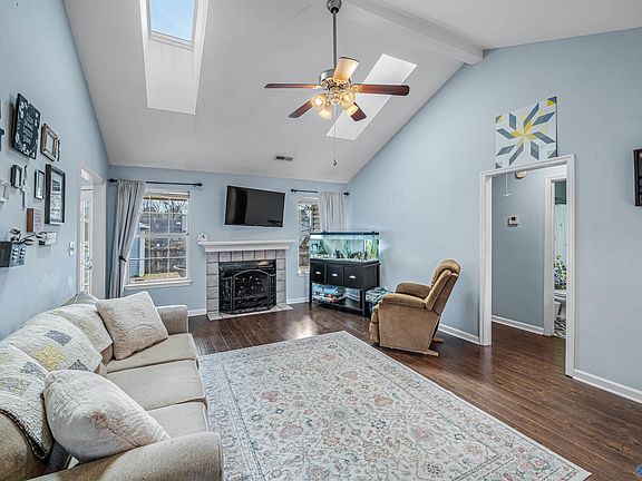 Check out this Charming 3 Bedroom home now available in Autumn Ridge Subdivision in South Huntsville! Convenient access to Gate 3 of the Arsenal, Bell Mountain Park, Sandhurst Park and near by shopping centers. New Roof was added in 2023, HVAC & updated ductwork 2021, Hot water heater added 2023 and microwave 2024 . Enjoy the outdoors in the large back yard with privacy fence, covered patio, and powered shop. The spacious family room boast vaulted ceiling, dual skylights and wood burning fireplace. Master bedroom includes tray ceiling and large walk-in closet. Has energy saving attic stairs insulation cover for pull down stairs. Simple safe security is available.