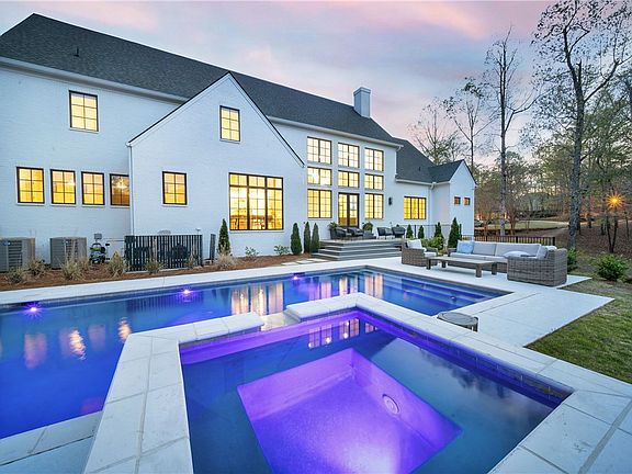 This exquisite 5,948 sq. ft. estate offers unparalleled luxury on a private 0.8-acre lot, featuring a resort-style pool, hot tub, and serene pond views. Designed for sophisticated living, this three-story masterpiece showcases white oak hardwood floors throughout and impeccable craftsmanship. The main level features a grand living area with a stunning marble fireplace, a gourmet chef’s kitchen with premium appliances, marble countertops, a walk-in pantry, a secondary kitchen, and an expansive mudroom. The primary suite is a sanctuary with his & hers vanities, dual walk-in closets, and a spa-inspired bath. Upstairs, three guest suites each offer private en-suite baths and walk-in closets. The walk-out lower level is designed for refined entertaining, featuring a fireplace, wet bar, guest suite, and access to the poolside retreat. Located in a premier neighborhood off Bent Creek Road, convenient to Interstate 85.