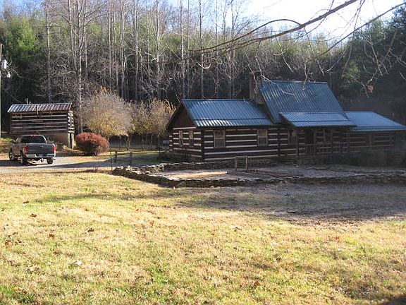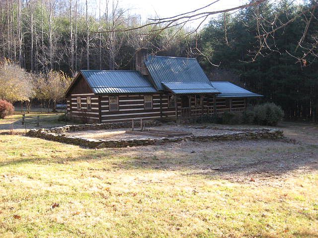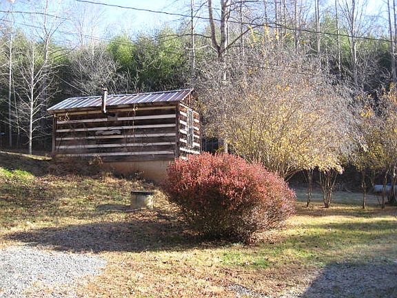 Rustic Log Cabin on 4.27 acres with a creek that runs along the front property line. It's only 15 minutes to Boone and 10 minutes to the Food Lion. On the main level is the kitchen with wood flooring & a fireplace, large Master Bedroom with a walk-in closet & full bath, two more bedrooms & a laundry room & upstairs is a loft bedroom.There is a two car carport & storage building and separate log out building over a potential root cellar. The previous owner had three large gardens on this gentle 4.27 acre tract that can be used as horse property.