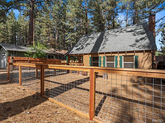 Looking for an old world charm, log cabin in an excellent, move-in ready condition? Look no more. This knotty pine Lake Tahoe cabin is surrounded by tall pine trees and is only 6 blocks away from Lake Tahoe Blvd, restaurants and shopping. You may walk your dogs or ride your E-Bike on trails along Trout Creek to Lake Tahoe Community College. On the first floor of this fully furnished cabin you will find a good size family room with gas fire place, a bedroom, a full bath and a nicely remodeled kitchen (see the photos). The kitchen has door to the fenced backyard just in case woofy needed to be let out . Upstairs you will find two more bedrooms and another half-bath plus a small office/ study / loft area. Upgrades include newer vinyl plank flooring, double pane vinyl windows, a newer kitchen including appliances, tasteful bathroom fixtures, driveway, water heater and electric panel.