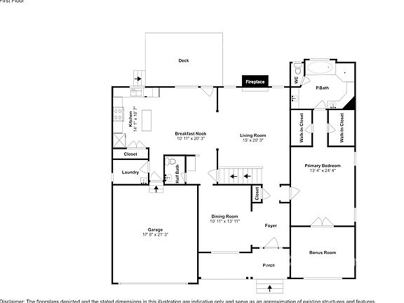 Home Features and Amenities: Air Conditioning, Bonus Room, Breakfast Nook, Covered Porch, Deck, Fireplace, Garage, Hardwood Floors, Kitchen Island, Long Lease Terms, Pet Friendly, Primary Bedroom on Main, Recessed Lighting, Smart Home, Stainless Steel Appliances, Tile, Walk in Closet, W/D Hookups, and professionally managed by Invitation Homes.