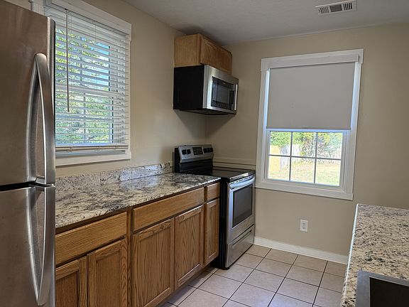 This cozy ranch home with great natural light is 1025 square feet and has 3 bedrooms and 1 bath. Following Helene, it has a new roof, new siding, new LVP flooring throughout the living area and bedrooms and a fresh coat of paint. The large living, dining room combo has lots of natural light and is off the kitchen that has stainless steel appliances (includes a dishwasher) oak cabinets and granite countertops. Laundry includes washer and dryer. The large, private fully fenced back yard is a great space to spend time with family and friends. It's close to Bobby Jones Expy and only 10 minutes from Fort Eisenhower's Gate 5.