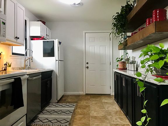 This 4 bedroom/2 bathroom house has previously been rented as two separate units and contains two full kitchens and two living room areas. The backyard comes with a large deck equipped with privacy panels and there are two fire pit areas.