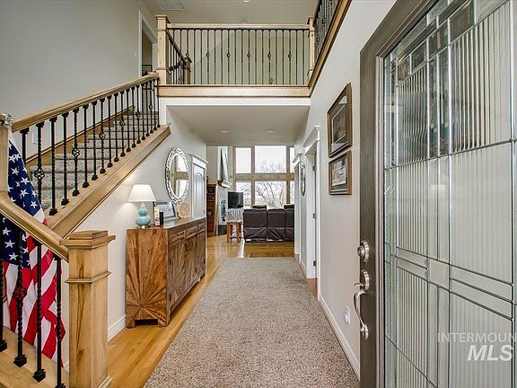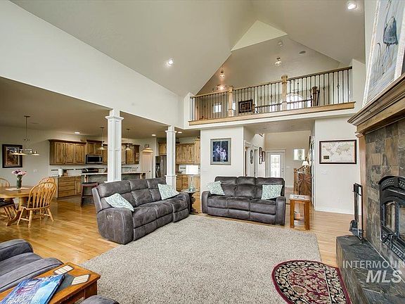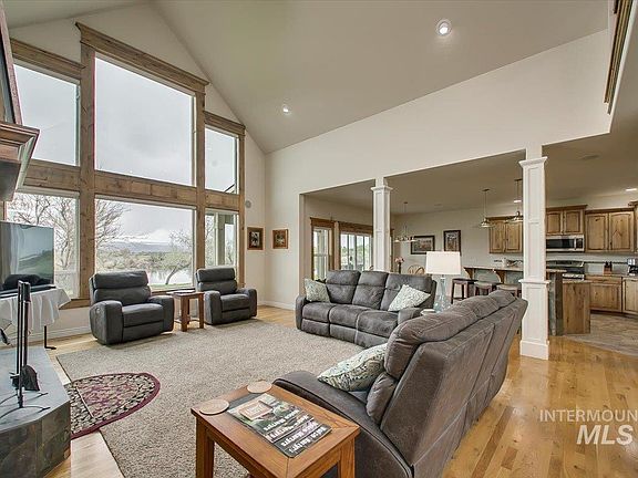 This stunning property offers breathtaking views in all directions including the scenic Owyhee mountains. Located on the Snake River, it truly offers all the best of what Idaho has to offer. The custom 4 bedroom, 3.5 bath home features excellent craftsmanship. Upon entering the home you are greeted again with the great outdoors through the floor to ceiling windows in the spacious, two-story living area complete with a wood-burning fireplace that opens up to the dining and kitchen area. The gourmet kitchen features custom hardwood floors, granite countertops, custom cabinetry, stainless steel appliances, a butler's pantry, and a breakfast bar - great for entertaining or simply soaking up the breathtaking views. This pristine, fully-fenced property sits on 2+ acres and boasts a massive 6-car garage that includes an RV garage large enough to fit all your toys and boat. Located a short distance from shopping and dining, vineyards, with plenty of wildlife, mature trees, and fishing/water recreation.