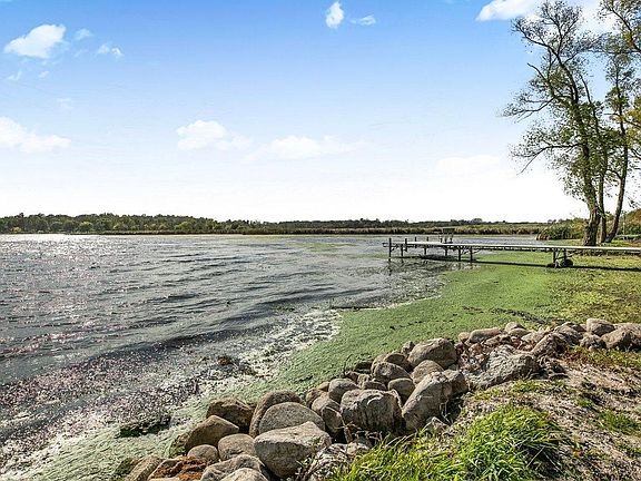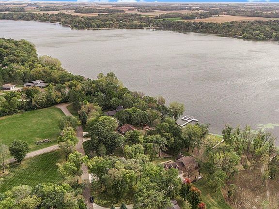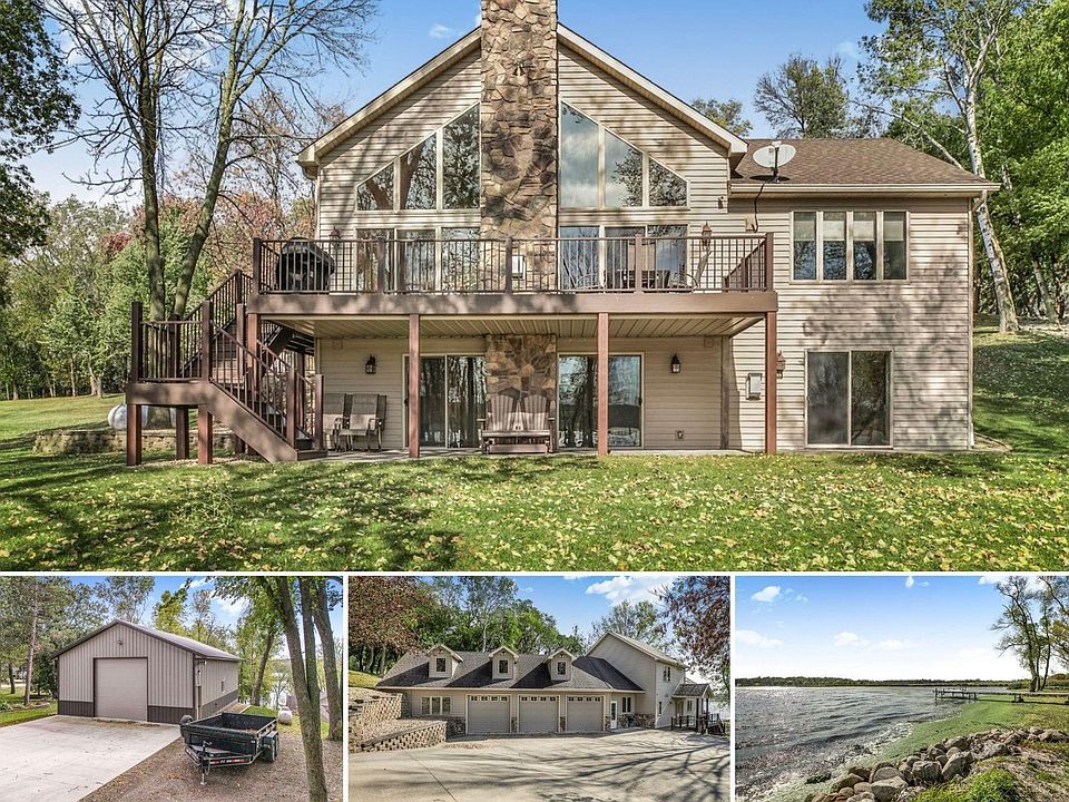 The insulated and heated garage (56.5x28) boasts tiled floors, a kitchenette, and extra storage above—ideal for gatherings or hobby space. Plus, a newly built 30x50 heated and finished garage offers additional parking and workspace. Recent updates include a new furnace (2023), new Culligan water softener (2021), new stationary dock (85–90 ft) with an additional 60 ft water dock, new cement driveway with drainage, fresh paint throughout, and new landscaping and rock for improved drainage and erosion control.
