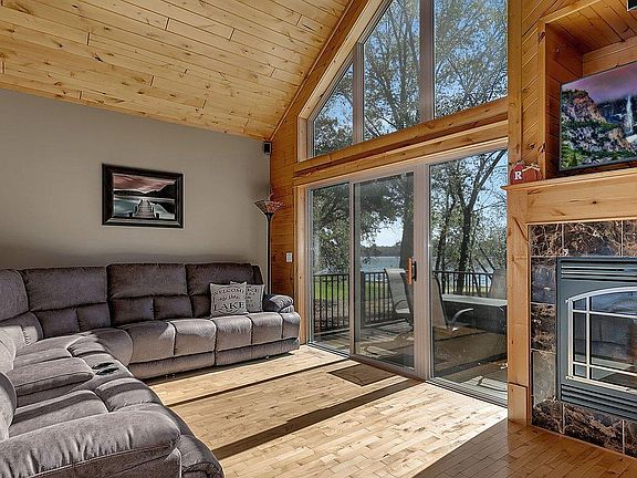 Immaculate and move-in ready, this beautifully crafted home offers quality finishes throughout and incredible lake views from every angle. The newly updated kitchen features stainless steel appliances, knotty alder cabinetry, granite countertops, and hardwood floors. The main-floor primary suite includes a jetted tub, separate shower, and gorgeous tile work. Enjoy a bright and open lakeside living area with a wall of windows and access to the new maintenance-free Azek deck. The lower-level walkout features a new paver patio and sidewalk leading to a lakeside fire pit—perfect for relaxing or entertaining.