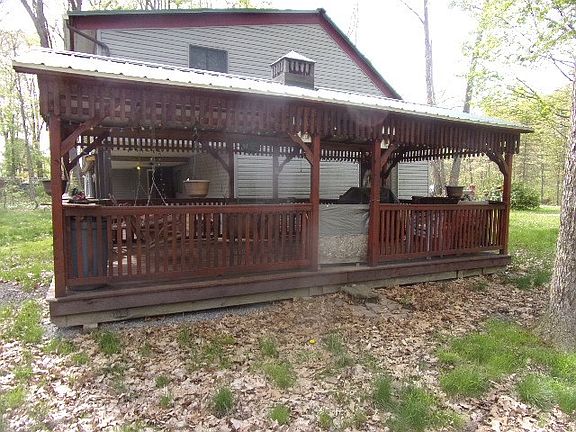 2 or 3 bedrooms ~ loft is currently bedroom. Newer metal roof & hot water tank. UV light & water filter. Some finish work to do but what a place when you finish it! Some of the building materials to finish are on site. T&G Cathedral Ceiling with skylight. 2 sheds and a wonderful pavilion Close to Coon Creek and Gamelands #24. Extra lot has a well. Wood or propane heat. Close to quad, snow mobile trails. 2 lots, see map and see 2 lots under Stilwell.