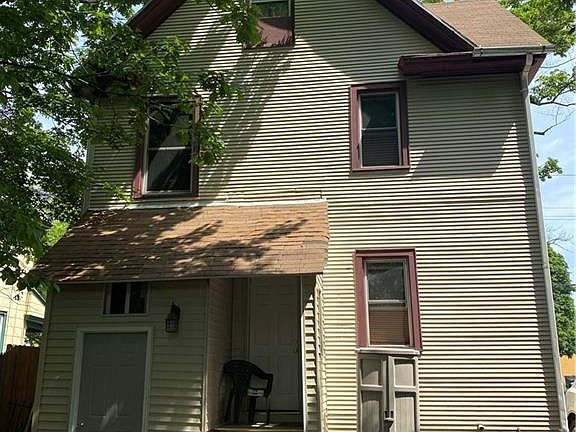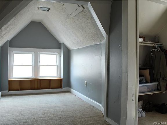 LOOKING TO BUY OR INVEST? This four bedroom Colonial is located in the heart of Newhallville, and offers four floors of complete living space. The exterior front enclosed sun porch presents new vinyl siding, and leads to the first floor that features a living and dining room with hardwood floors. The eat-in kitchen has stainless steel appliances and a glass tile back splash. A full bathroom is located directly off kitchen. Staircase in kitchen leads to a large hallway on second floor that presents two bedrooms and another full bathroom. Third floor has two more loft style bedrooms that are heated with electric baseboard. Basement offers full living space and grants a separate entryway, along with a half bathroom that has the potential to be converted into a full, and a separate laundry area. Newer energy efficient gas heating system was installed in 2012. Large paved driveway leads to a fenced in back yard with utility shed. Seller added new concrete entryway stairs and an updated enclosed back porch with new vinyl siding. Property is located within the designated area to apply for the "Yale University Home Buyer's Program". Conveniently located near all major bus lines, SCSU, Yale University, Albertus Magnus College and minutes to downtown New Haven.