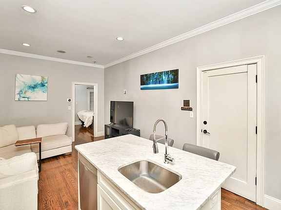 Prime opportunity to rent a 1 bedroom in an amazing location in Southie with a private deck AND patio! This 1 bedroom unit in fantastic condition offers an open concept feel with the kitchen that features a large island, marble countertops, and stainless steel appliances (including dishwasher) and blends with the generous-living room with plenty of room to entertain! The bedroom is very large and offers in-unit laundry, a large closet, and an updated bathroom with a tiled shower. The unit features gleaming hardwood floors throughout as well as central air. Available 9/1/2025 12 months fixed lease. Tenant pays for gas and electric.