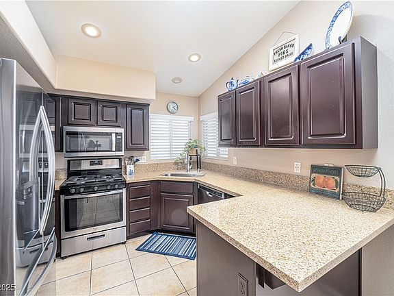 - Description: Breakfast Bar/Counter,Garden Window,Lighting Recessed,Quartz Countertops,Stainless Steel Appliances,Tile Flooring