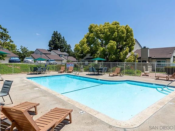Seller Financing Offered! No points, no appraisal fee! This gorgeous, single-level, 2-bedroom, 2-bathroom townhome has been upgraded throughout with high end materials including: Uba tuba granite counters in dining room, kitchen and baths, Natural travertine flooring, New carpet, Serpentine marble and tile in both showers and the beautiful fireplace with custom Jarrah wood mantel, Custom tiled shuttered laundry in hallway (washer and dryer included), Cherry wood cabinets, Newer double paned windows and sliders, New stainless steel kitchen appliances, RO water system in sink, Painted two car garage with newly epoxied floor plus driveway space for 2 more cars, Three ceiling fans, Soundproofed common wall in living room with vaulted ceiling, Large, private patio off living room has natural gas outlet for your barbecue, Spacious primary bedroom has large, en suite bathroom, three closets and private patio. Quiet second bedroom would make an ideal WFH office. Step outside and take advantage of the community’s sparkling swimming pool and relaxing spa on a private circular road, all with a low monthly HOA fee. Discover comfort and convenience in this peaceful and warm townhouse located in the heart of San Marcos close to the 15, 78, Sprinter, Costco, CSUSM, Palomar College, markets, restaurants, etc. A rare turn-key opportunity with flexible seller financing—don’t miss your chance to own in one of San Marcos’ most desirable communities!