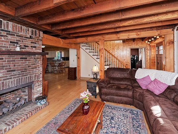 This historic post & beam colonial home radiates timeless elegance & impeccable curb appeal. Many significant updates have been made to this 4 bedroom, 2 full bath home while retaining much of the original character. Wood flooring, exposed beams, FP fam rm (w/gas log), wood stove in dining rm. Living rm or office with woodstove & an expansive kitchen featuring a large island, extensive cabinets, pantry closet & it is fully applianced. Additional backroom provides for laundry & a full bath with a free-standing gas stove, access to 2 car garage & an additional rear staircase. Upstairs are 4 generous bedrooms (2 of these need finish work) & a hollywood BA. 2 young heat pumps for heat & AC, Navien on-demand wtr heater (propane), young roof enhanced by solar to keep electric bills down, & a new septic being installed on left side prior to closing. In Ground pool (fenced) surrounded by lush landscaping w/mature plantings on over 3&1/2 acres. Come put your finishing touches on this home!