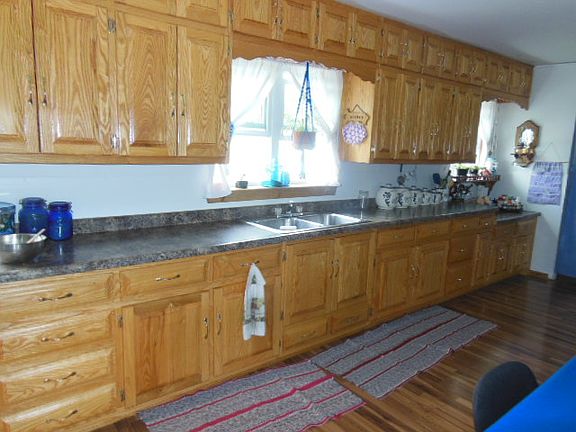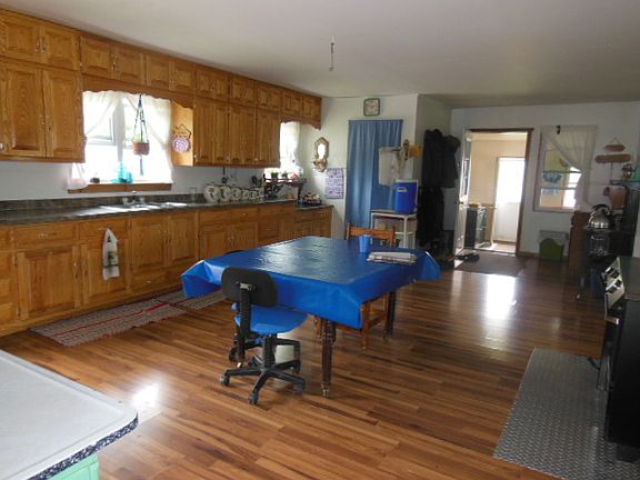 Custom built 4bd/1ba Home on approximately 13 Acres M.O.L. This property has much potential for a beautiful homesite and also has the amenities of having a business location with 3 offices, shop, parking, and overhead storage in a 30x60 pole barn. Home offers a gorgeous open layout with large kitchen, large living room and dining area. There are 4 bedrooms and a nice bathroom. The cabinetry in this home is beautiful and a kitchen to admire with a true pantry. This home has very nice laminate flooring thru the main areas. There is a nice basement that offers storage. The property has an additional older barn that has fresh paint, stalls, hay storage, and loading area. The property is mainly fenced and on the far East side there is an older barn that is currently housing horses. This home has abundant storage throughout. The property itself has fruit trees such as peach, cherry, apple,plum, pear,and blueberry, raspberry, black berry, and rhubarb plants. Meter for City water set previously. Shown by Appointment. Please note there is no electricity in the home.