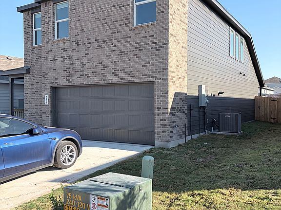 Be the first one to live in this BRAND NEW home in beautiful Kyndwood - the masterplan community in New Braunfels. Conveniently located off I-35, exit 193/194, overlooking Mayfair and Buc-ee's, easy access to major hwys, easy commute to San Antonio, San Marcos, New Braunfels and Austin. This 2-story elevated Eventide collection home features 9-foot ceiling, 4 bedrooms, 3.5 full baths and 2 car garages. Open floor concept with vinyl plank flooring throughout all common areas, and carpet in bedrooms. Spacious modern kitchen with quartz counter tops, stainless steel appliances including Refrigerator, stove & oven, combination vent hood/microwave, dishwasher, and garbage disposal. The luxurious owner's suite is nestled downstairs in a private rear corner, complete with a full bathroom and walk-in closet. A secondary suite with a full bath is an ideal layout for in-laws or guests. Take the advantage of enjoying a covered patio and quiet backyard to entertain the whole family. The community facilities include a full gym, swimming pool, playground and pickleball courts. Small size pets are welcome. This is a MUST see!