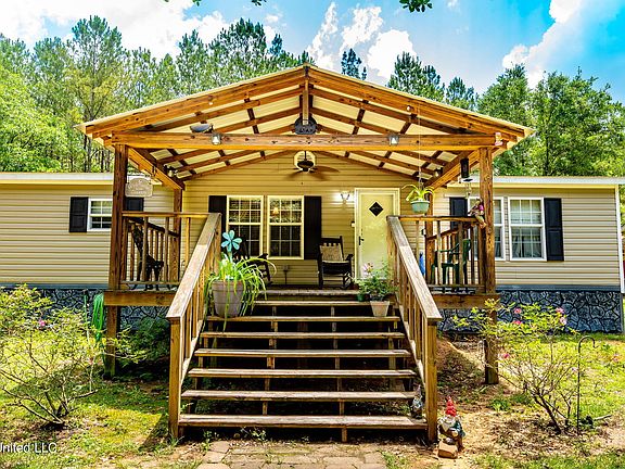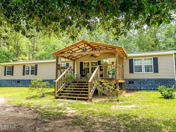 Welcome to your new private oasis! This manufactured home is on a private 4-acre lot with a serene and secluded setting, located near MS/AL line in the Agricola school district. The home features a cozy and inviting interior, a split floor plan, two spacious living areas, a large shop, a huge front porch, and an outdoor covered patio area perfect for relaxing or entertaining! New dishwasher and electric range in the kitchen with ample counter and cabinet space. The primary suite has a walk-in closet and a large master bath with a garden tub and separate shower. Outside, you'll find a variety of fruit trees and plants, including Muscadine, Blueberries, Satsuma, Kumquat, Gardenia trees, Roses, and Wisteria vines.