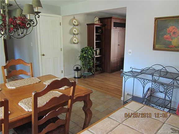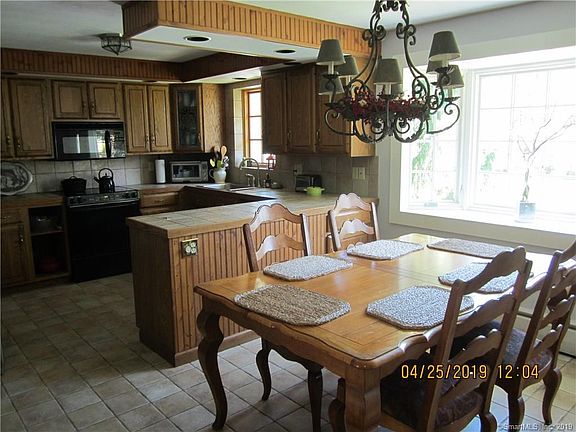 totally updated for easy one floor living. Large eatin Kitchen with tile floor and island Open to Living Room with a wood burning fireplace (never used and a wood burning stove off to the side that is used all winter. French doors provide access to an oversized mahogany deck and an open backyard with gardens and privacy and an area for a playscape. OR when the sun is too strong or when the rain comes -you can move off the deck to a large covered paver patio and relax or fire up the grill. The first floor is completed by 3 bedrooms and a full bath and laundry closet. All hardwood floors. The lower level is walkout and partially finished with tiled full bath and lots of closets (one is cedar and plenty of storage in the unfinished area. There is a generator hook up along side the 200 amp electrical service; new oil tank and newer furnace. New pella windows including new Pella bow window in the kitchen; prewired for CVAC (needs canister. EXTRA BONUS in the back of the property-stone driveway leading to a HUGE out building 26' x 37' with a 2nd floor -large enough for multiple cars, workshop, collector; etc EZ to show Sewer in in the street by the end of the driveway-assessment has been paid in full
