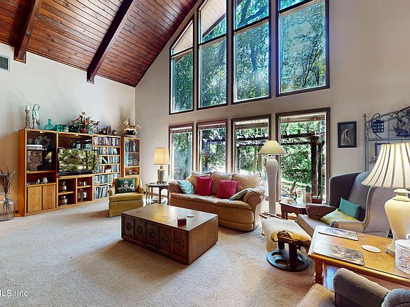 Located on a rare 2.7-acre private parcel in the heart of Fleming Island, this ranch-style home offers a one-of-a-kind opportunity. Surrounded by a secluded oak hammock, the setting provides unmatched privacy while keeping you just minutes from top-rated schools and all the amenities Fleming Island has to offer. Built and maintained by the original owners, this 3-bedroom, 2-bath residence is ready for its next chapter. The spacious living room welcomes you with a wood cathedral ceiling, a loft that overlooks the space, and a oversized wood-burning fireplace that serves as the centerpiece of the home. The split-bedroom floor plan offers a large owner's suite featuring dual closets and a generously sized bath. While the home is being sold as-is and awaits a modern renovation, it presents the perfect canvas for a family to create their dream retreat. Opportunities like this—acreage, privacy, location, and no CDD Fees or HOA fees.—are rarely available in Fleming Island.