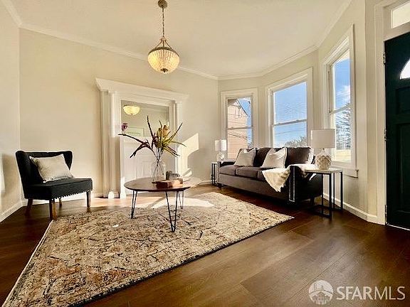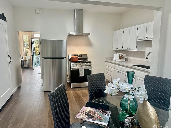 Gorgeous home in a sought after area, upper Monterey near the Glen Park Bart Station, Fwy and just minutes to Downtown. Beautifully updated, new flooring throughout, spacious & bright kitchen w/new stainless steel appliances, new quartz countertops, eat-in area, mostly new doors, large one bedroom, formal dinging room or optional second bedroom w/closet, one bath, freshly painted inside & outside, covered deck w/views of beautifully large landscaped backyard with fruit trees including two apple, plum, lemon tree/bush and other small fruit tree, extra large garage w/storage. PLUS downstairs one more bedroom & bath or potential separate studio for extended family, city views from the front porch and much more...