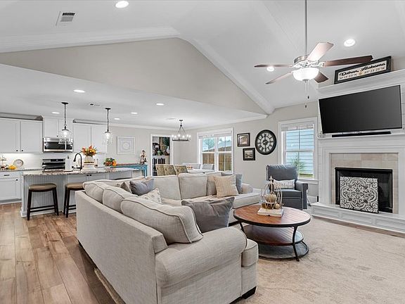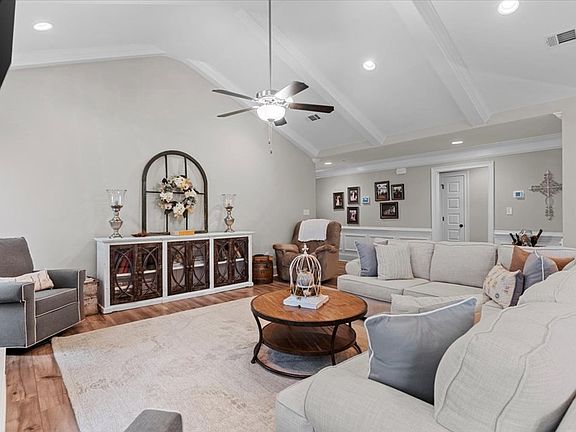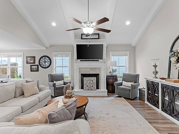 Luxurius, comfortable, and elegant are words that define this home, that is one month shy of being one year old. This home was built in 2022 with a vaulted beamed ceiling in the huge great room to accentuate the space, along with a gas fireplace to enjoy on those cooler nights. The huge kitchen's cabinetry, under cabinet lighting, upgraded stainless steel appliances, (all of which remain) pull out trash can cabinet, and granite counter tops, are sure to enhance cooking and eating experiences. Retire to the master suite that exudes privacy and tray ceilings while the adjoining master bath includes custom tiled master shower, soaking tub, granite countertops, an enormous master closet, plus a doored water closet containing a comfort height toilet. From something as simple as a laundry room with custom cabinets that does not abut any bedroom, or the bonus room located upstairs with a half bath that can be used as an office space, entertainment room, or even another bedroom; this plan provides plenty of comfort. Other features to notice are: 2" faux wood blinds throughout the home, along with 7 inch baseboards, and upgraded lighting package. For outdoor living this home has a covered back patio, plus a 14x14 concrete slab and eave lights to illuminate this beautiful home. The homeowner will also enjoy the 2 salt water pools this community has to offer on those hot summer days. This home is a must see! Call or Text agent for entry code.