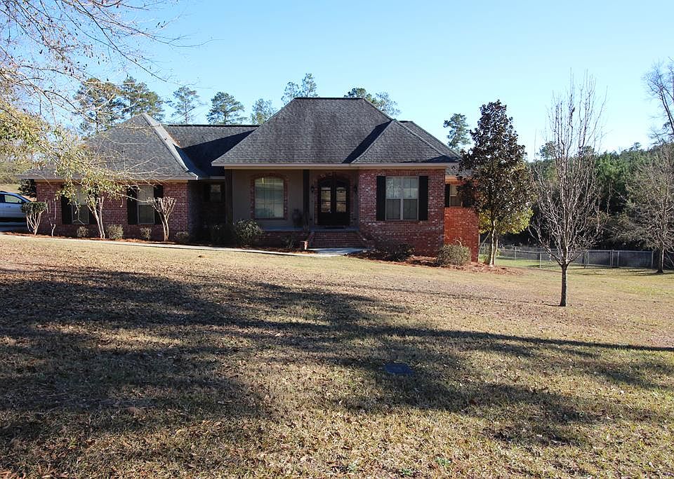 Quality construction built by Craig Flanagan in 2009. This home features an open split plan with 11 ft ceilings in the open living area, granite fireplace with gas logs, solid granite countertops in kitchen and baths, and scored and stained concrete floors throughout. The kitchen features custom cabinets, huge island with power and loads of storage, gas range with convection oven and warming drawer, and stainless appliances. Large master features tray ceiling, custom tile shower, Jacuzzi tub and two walk-in closets. Home is situated on 2 secluded acres with a large fenced backyard and relaxing deck. Just minutes to I-59 and convenient to both Laurel and Hattiesburg.