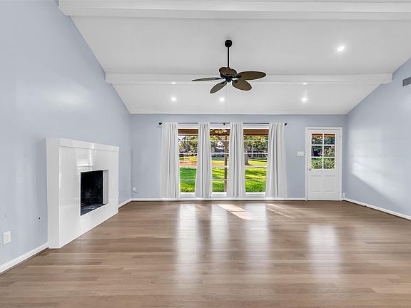 Come enjoy golf course living in Panorama Village! This charming ranch-style home sits on two lots with beautiful golf course views. The open-concept living area with fireplace is warm and inviting, while the spacious primary suite offers a sitting area and a renovated bath with large walk-in shower. Each secondary bedroom includes a private en suite bath, perfect for family or guests. Upstairs, a versatile flex room can serve as a playroom or extra storage. Additional highlights include a large utility room and bonus storage space off the covered back patio. The wooded backyard provides shade and scenery, ideal for relaxing outdoors. Updates include new furnace, air conditioning, water lines throughout, electric panel and water head. Best of all—NO HOA fees and NO MUD taxes!