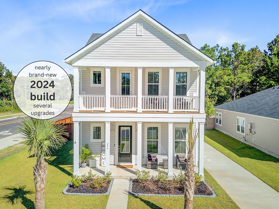 Welcome to this stunning 4-bedroom, 3-bathroom home in highly sought-after Limehouse Village! Built in 2024, this 2,231 sq ft two-story residence sits on a prime 0.17-acre corner lot with a wooded buffer and tranquil pond views. Almost brand-new Washer, Dryer and Stainless Steel Refrigerator included. Designed for comfort and style, the home features 10' ceilings on the first floor, 9' ceilings upstairs, hardwood stair treads, luxury vinyl plank flooring, all-glass entry doors, and a chef's gourmet kitchen with quartz countertops, white cabinets with soft-close and crown molding, stainless steel appliances, double wall ovens, 5-burner gas cooktop with stainless steel hood, large center island with shiplap and breakfast bar, huge walk-in pantry, and designer tile backsplash.Themain floor offers a guest bedroom and full bathroom, perfect for visitors or multi-generational living. Upstairs, the loft provides a flexible second living area. The luxurious primary suite features a private balcony, massive walk-in closet, and a spa-like ensuite with extended tiled walk-in shower with seat and marble-topped dual vanity. Outdoor living includes a covered front porch, second-story balcony, screened backyard porch, irrigation system, privacy fence, rain gutters and fresh landscaping with palm trees, fresh sod and stone edging. The detached 2-car garage offers remote entry, and a service door to the fenced yard. This move-in ready home offers several upgrades, luxury features, and warranties made for easy low-maintenance peaceful living. Please see Photos for Detailed List of Extras! Limehouse Village residents enjoy resort-style amenities including a swimming pool, pavilion, play park, picnic tables, golf cart lane, scenic ponds, wetlands, walking/jogging trails, and three main neighborhood entrances. Zoned for Dorchester District Two schools: Newington Elementary, Gregg Middle, and Summerville High all recognized for academic excellence and strong community involvement. Economic advantages for buyers include proximity to major employers such as Boeing, Volvo, Bosch, Mercedes-Benz Vans, and Joint Base Charleston, plus easy access to I-26, Charleston International Airport, and the Port of Charleston. Summerville offers steady home value growth, a thriving small business scene, and abundant year-round recreational opportunities all just a short drive from Charleston's historic charm, beaches, and vibrant culture.