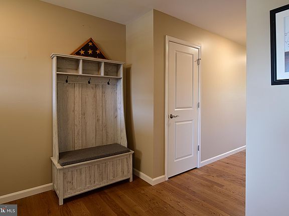 First floor laundry roomPartially finished lower levelWall of windowsEpoxy flooringHardwood floorsSlider doorWalk in closet