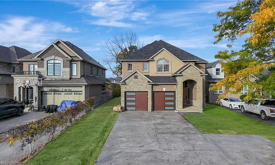 Welcome to 254 Rymal Road West, a custom-built 2-storey residence offering nearly 3,900 sq ft of beautifully finished living space tailored for families and multigenerational living. This thoughtfully designed home features 6 spacious bedrooms and 5 bathrooms, including a fully finished basement with a modern kitchen and appliances, ideal as an in-law suite or private guest space. Inside, enjoy a stunning open-to-above ceiling in both the dining and family rooms, creating a dramatic sense of space and natural light. The main floor layout offers seamless flow for everyday living and entertaining. Upstairs, dual luxury bathrooms serve the family quarters, including a 5-piece retreat-style ensuite. Outdoors, a freshly poured stamped concrete driveway leads to a double garage and adds upscale curb appeal. The private backyard backs onto open space, with no rear neighbours. Situated on a 49 x 138 ft lot, this home is ideally located minutes to Fortinos, William Connell Park, and top-rated schools, including Blessed Sacrament CES and Bishop Ryan CSS. With quick access to Upper James, Upper Gage, and the Lincoln Alexander Parkway, daily commuting and errands are effortless. A rare opportunity to own a home that blends elegance, space, and family-focused functionality in one of Hamilton’s most convenient neighbourhoods.
