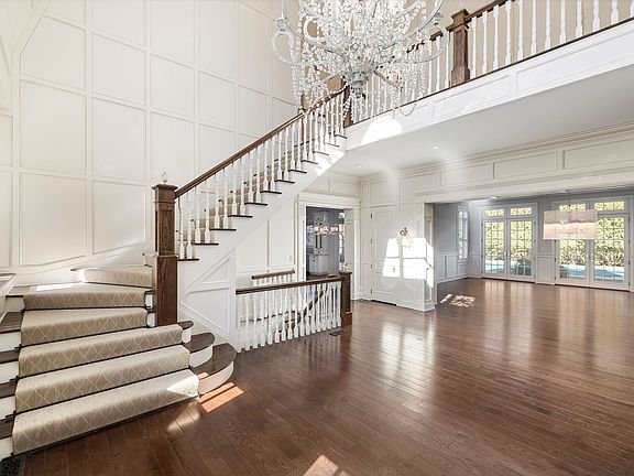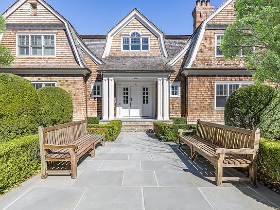 Down a long, hedge-lined drive with gated entry, this cedar-sided traditional gabled home exudes classic Hamptons refinement and luxury. Situated on a private 1.04 acre flag lot surrounded by mature landscape and just moments to the ocean and Southampton Village. Developed by the renowned Farrell Building Company, the primary home has an impressive 11,809 +/- sq. ft. with 8 bedrooms, 10 full baths and 3 half baths, and an attached 3-bay garage. No interior details are overlooked with impeccable flooring, soaring ceilings, thoughtful custom features including an elevator reaching all three levels. Upon entry the double-height foyer leads to the great room with an impressive floor to ceiling French doors connecting to the outdoors. The kitchen and breakfast room boast commercial grade appliances with an adjacent butler's pantry and a dedicated formal dining room. The gracious living room is anchored by a grand fireplace and an attached three-season room. A stately office with custom mahogany millwork, two powder rooms, and a junior en-suite primary complete this level. Ascending the grand staircase with a dramatic balcony, the spacious primary suite has a vaulted ceiling, two wood-burning fireplaces - one in the bedroom and one in the primary bathroom, plus a private sitting room and outdoor balcony. The second level features four additional en-suite bedrooms. The finished lower level has travertine floors with large recreation space, wine cellar, sauna/steam rooms, media room and 2 en-suite bedrooms. The backyard has meticulously manicured landscaping with bluestone patios which allow multiple areas to relax and entertain, including a 20'x40' heated gunite pool and spa, fenced garden, a summer kitchen and pergola. A well-equipped 749 +/- sq. ft. pool house has 2 full baths, a kitchenette, a fireplace and two private studios. Lined by lush perimeter hedges, your privacy is always ensured. This stunning property has all of the amenities and luxuries to achieve the Hamptons lifestyle you dream of, along with the beach and village within close reach.