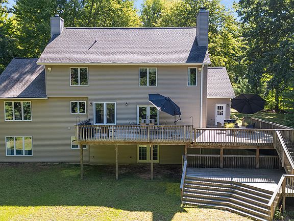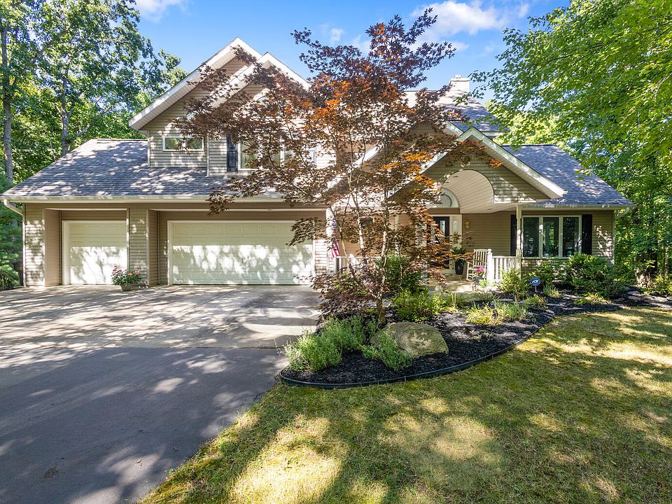 Discover your dream home nestled at the end of a quiet, private road on just over five acres of lush woods — a true sanctuary for those who love the outdoors. This peaceful retreat in highly sought-after Plainwell offers a perfect blend of nature's tranquility and comfortable, modern living. From the moment you arrive, the serene surroundings and towering trees welcome you into a world of calm and natural beauty. The charming front porch invites you to sit back and enjoy the gentle sounds of nature and spacious yard. Inside, the home has been thoughtfully renovated with fresh paint which brightens the spacious main floor, while skylights flood the space with natural light. Cozy up by one of two fireplaces (gas and gas/wood) in the living and family rooms, perfect for evenings or quiet moments. The open kitchen and large dining area overlook the peaceful, wooded backyard with stunning views through every season, from the vibrant fall colors to the quiet snowfall in winter. Upstairs, three generous bedrooms provide plenty of room for rest and play, in addition to a primary suite designed for comfort and privacy. The finished walkout lower level is an ideal spot for movie nights, an extra bedroom for guests, and a full bathroom - perfect for multigenerational living or growing families. Additional features include a spacious three-car garage, new roof, fresh paint, updated landscaping, main floor laundry (with optional hookups downstairs), and easy-care gutter guards. The paved driveway welcomes you home every day. Located in charming Plainwell, a small town known for its scenic Kalamazoo River and warm community spirit, you'll enjoy the best of both worlds - peaceful country living just minutes from the conveniences of Kalamazoo and Grand Rapids. Whether it's hiking your own wooded trails, watching wildlife from your deck, or gathering around the fireplace, this home offers a rare blend of privacy, natural beauty, and modern comfort - perfect for families who cherish the outdoors and the simple joys of home.