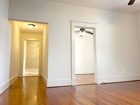 High ceilingsNatural lightOutdoor patio areaOff-street parkingLarge windowsHistoric moldingsEat in kitchen
