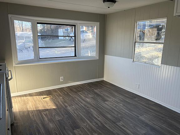 Two bedroom, one bath single wide mobile home for rent. Fresh new paint and flooring throughout. Kitchen features large bay window, open floor plan, lots of cabinets and a pantry for extra storage. Furnished with a stove and refrigerator. Bedrooms feature built-in desks and extra storage drawers. Washer and dryer hook up. Large closet in master bedroom. Electric heat throughout. Located in Hideaway MHC in Greenvalley, WV. Two-car paved driveway. Privacy in front of home due to vacant lot next to home. Weekly curbside trash pick up and lot rent included in the monthly rent. Move in ready!