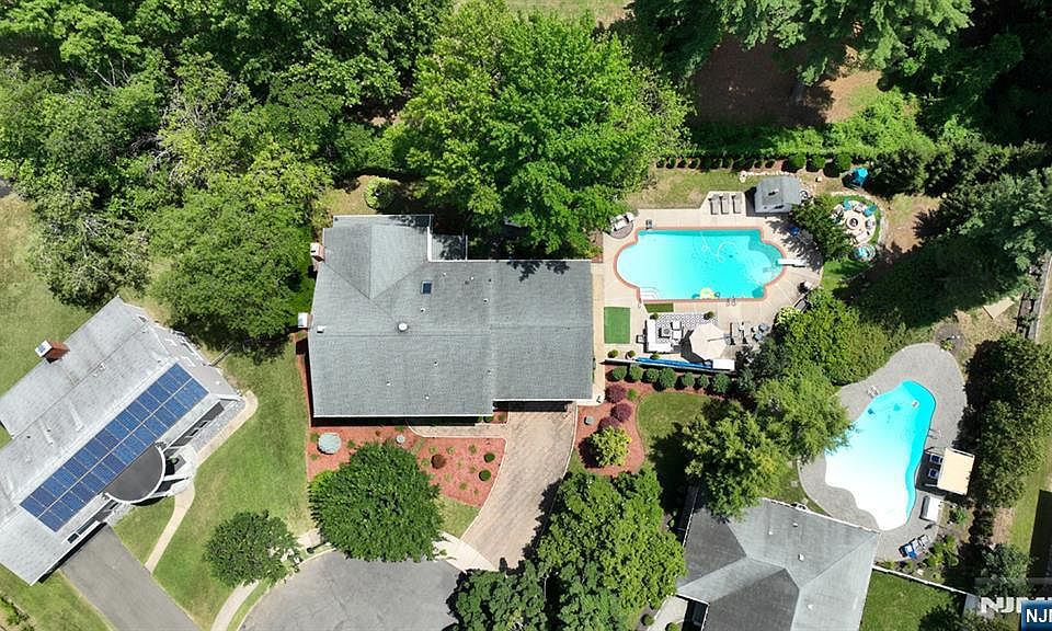Imagine your private backyard w/ a gorgeous heated in-ground pool, fire pit & beautiful garden patio, where u step thru a gate to tennis courts, carousel, walking trail, playground, pony rides, a kiddie train and a zoo! This sprawling stately brick colonial w 5bed/5bath nestled at the end of a quaint cul de sac is where dreams and unforgettable memories are made., Its covered patio beckons an entertainers dream with seemingly endless living space w/ oversize rooms on 3 floors. The 1st floor has a 2-story entry, formal dining, Living with fireplace, crisp white kitchen w/ island seating, a FBath, Mudroom and a stunning Atrium Family room w/ fireplace, wall of windows and 3 skylights. Upstairs a Primary suite w 2 walk ins, eFireplace and large FB, 3 more extra generous BRs and a 5h BR that can be a library, 2 Full Baths and laundry rm. Finish basement w/ a huge rec rm w 4th fireplace, a media den with bar, sauna, full Bath and mini gym and storage. Attached 2 car garage, wifi sprinklers, green heat/cool system w/ many heated floors, & too much more to mention! Low Paramus taxes, commuter and shopper and convenience dream.