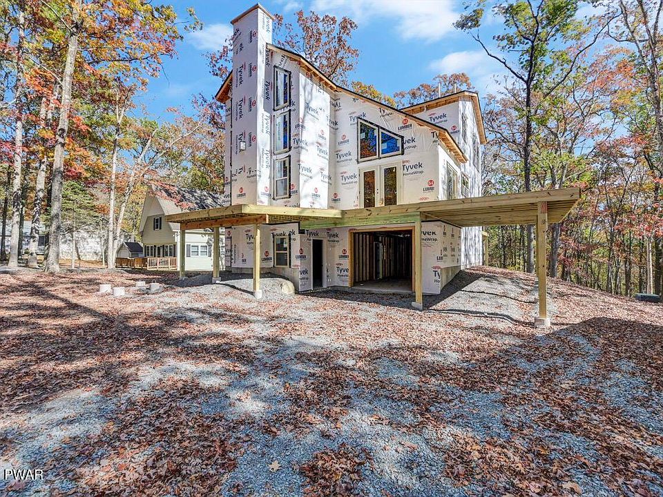 UNDER CONSTRUCTION Brand new beautiful lakeview model on Greenbelt, built by areas PREMIER BUILDER. Builder is including the following upgrade in list price: U shape kitchen, exterior fieldstone chimney (deck up), vinyl basement living room floor, tile kitchen back splash, black soffit/facia and gutters w/ gutter guards. Exterior vinyl siding color is Sagebrook. Home offers 3 floors finished, turn key package, custom built home featuring 4BD (including 2 suites) 3.5BA, open floor plan, cathedral ceilings, finished basement, multiple living areas, front and rear deck, rear deck over looks greenbelt, wood grade trim package, premium roofing, siding and light package, interior fieldstone from floor to ceiling in living room, propane gas fireplace, hardwood floors, tile baths, SS appliances (white washer & dryer), granite kitchen and bathroom vanities, cac and heat throughout. Photos are from completed model that is SOLD. Masthope amenities include skiing, lodge w/scramble/ restaurant/arcade/bar, 2 outdoor pools (w/ Tiki Bar in summer), multiple playgrounds, tennis/basketball/pickleball courts, horseback riding, fitness center, ATV trails/cross country ski trails, white sandy beach on motor boating lake w/ swimming/fishing docks, and Deware River access with park for picnicking/BBQing, so many activities for the family to enjoy.