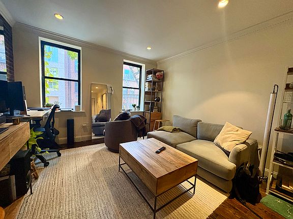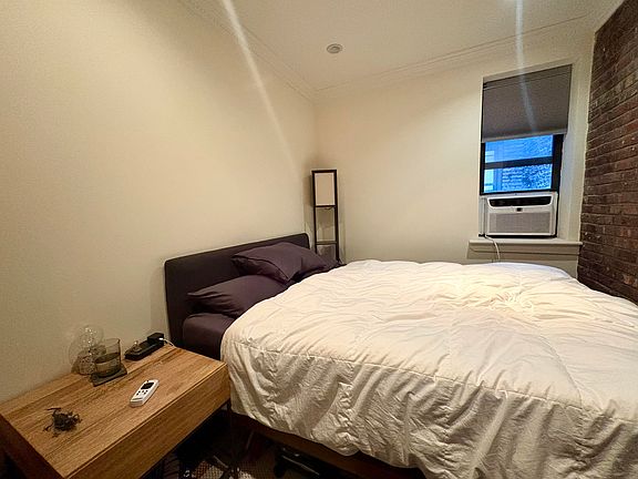 Renovated one bedroom, one bathroom apartment located in prime Chelsea. This apartment exudes charm, featuring crown molding, dark stained hardwood floors throughout and exposed brick in both living room and bedroom. The open kitchen features dark cabinetry and stainless steel appliances including dishwasher and microwave. The bedroom fits a queen sized bed, dresser and nightstand but does not have a closet. Washer/Dryer in unit.