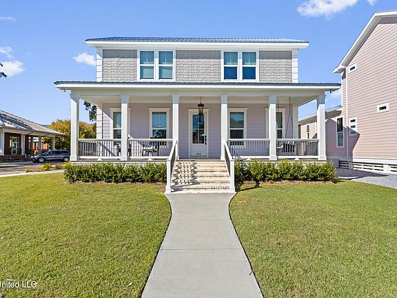 Your Perfect Coastal retreat! Steps from the beach, and easy golf cart ride to everything you love about downtown Pass Christian! restaurants, shopping, churches, yacht club dog park, tennis, splash pad,are walkable or bike ride away! Carefree living with this 3 bedroom, 3.5 bath low maintenance versatile home of hardi plank with metal roof and porches galore! This home has everything todays buyer demands, high ceilings, 8 foot interior doors, open living spaces, gourmet kitchen, laundry room with pantry space, main level master suite, and the favorite a cozy covered porch with bar area kitchen pass through perfect for alfresco dining.The finish work is impeccable, with cove moldings, luxury vinyl flooring, soft close cabinetry, decorator lighting , fireplace, stainless appliances, granite counters. The downstairs primary suite with its own entrance, has a close off option, if you wanted to rent it separately from the main house. It is spacious and has a spa bath and walk in closet with built ins. The upstairs has a gathering area, and a second primary suite with the most stunning tiled walk in shower! Currently licensed for short term rental, so if an investment property you are looking for ... this is IT! Furnishings may be sold separately. There is room in rear for a small pool. Such a great living concept in the heart of town! On the Mardi Gras parade route, you will have front row seats to enjoy all the fun!