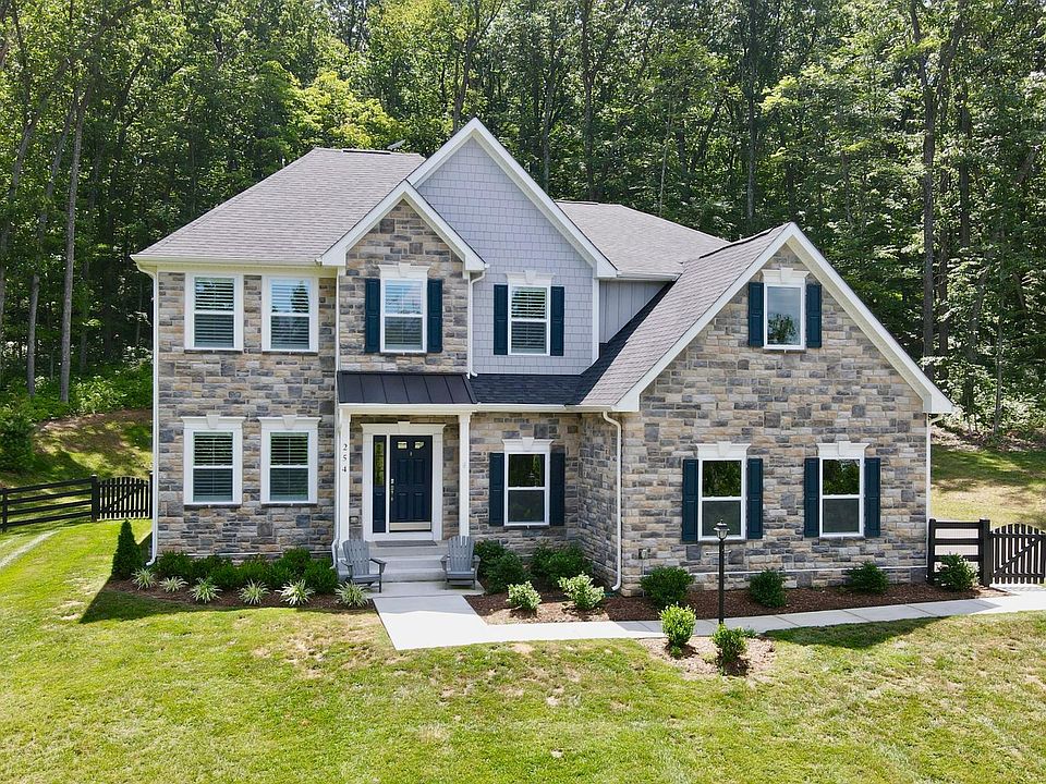 Situated in the picturesque countryside of Winchester Virginia boasting a modern aesthetic and elevation. Welcome home to 254 Whistlewood Ln! The home is beautifully positioned within the Royal Oaks community on a private 5 acre lot! It benefits from the serenity one would expect from a countryside home and the convenience of a short distance to town, commuter routes and just 15 minutes to Valley Health Winchester Medical Center! Built in 2023, this newer, luxurious Cleveland Model by Maronda Homes encompasses so much, surrounded by mature trees and shrubs with a feeling of seclusion and privacy. Visitors are greeted with a bright, open foyer, beautiful hardwood floors extending through to the open concept family room, dining area and gourmet kitchen. The family room is elegant and sophisticated with its coffered ceiling, exposed stone fireplace, custom shelving and recessed lighting. The kitchen shows off its beautiful white cabinets, and white quartz countertops, bathed in natural light from the adjacent sunroom. The sunroom provides access to a large composite deck overlooking the private yard and landscaping. The main level continues to be very impressive with a spacious office, in-law suite - bedroom with adjacent full bathroom as well as 1 half bath off the foyer. Perfectly designed for gatherings and families who come to stay. The main level also gives access to the 3 car side entry garage. The upper level of home is where you’ll find the spacious owners suite, with a contemporary en suite bathroom and tray ceiling. The primary room benefits from a luxury 20 foot closet expanding the length of the room. This level boasts 4 bedrooms with closets and 5 full bathrooms. Every space on the upper level is pristine and contemporary as one would expect from a newer home. There is a bonus room which could serve as an office space, rec room or even another large closet! The laundry room is conveniently located on the upper level. The lower level has a huge finished space to facilitate an additional family room, movie theater, rec room or 6th bedroom, the choice is yours! with walk out access to the rear yard. This level has the 7th full bathroom and plenty of storage options with additional rooms designed for that purpose. This well thought-out, practical floor plan boasts over 4,300 sqft of finished accommodation, not including the unfinished storage rooms on the lower level. Positioned on a quiet private road providing access to 5 homes. Royal Oaks Subdivision does not have a HOA. The home is perfectly situated for access to both Winchester and Stephens City, just 9 miles from Winchester Medical Center and 10 miles to Old Town Winchester with its array of charming stores, restaurants, coffee shops and shopping centers. A tour of this stunning home is highly recommended to fully appreciate all that it has to offer!