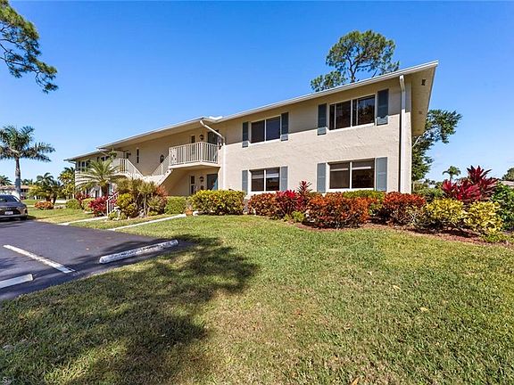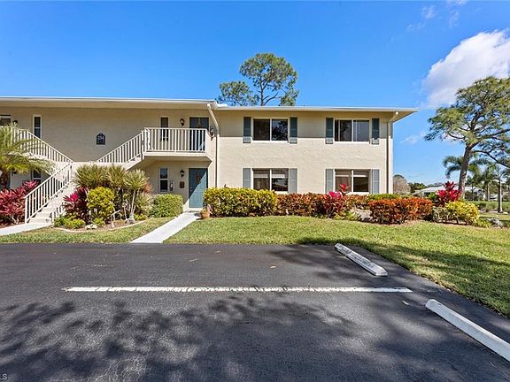 This lovely 2 bedroom, 2 bath coastal themed condo features shades of blue and white that create a breezy atmosphere that mimics the colors of the ocean and clouds. The grey wood luxury vinyl flooring throughout adds organic charm. The kitchen has white cabinetry with granite countertops and tile backsplash. Both bathrooms have newer vanities with a fresh beach vibe. The large living room in blues and yellow continues the fresh coastal theme and opens onto a lanai overlooking the 3rd hole of the Pines golf course. As an owner in the Glades Golf & Country Club you can enjoy unlimited golf on two renovated golf courses, the Pines a par 70 course and the Palmetto a par 55 course. Or enjoy our new Pickleball courts with a very active Pickleball league, or new Har-tru tennis courts, new bocce courts, 9 swimming pools throughout the community, 19th Hole Restaurant with indoor and outdoor dining and service to the main pool in season. The clubhouse hosts many activities during season including card groups, bingo and many activity club events. All this just 10 minutes from downtown Naples boutiques, fabulous restaurants, and beautiful beaches. Truly Paradise!