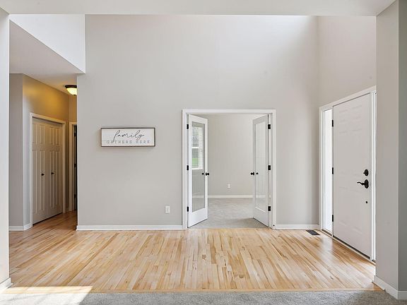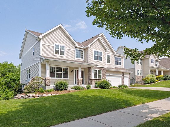 This shows like a model!!!! 5 Bedrooms/3 baths on a private wooded lot with beautiful landscaping, gorgeous wood floors, freshly-painted with new carpet! Main floor office, formal dining and living greet you upon entering the home. You will love the open floor plan and the 2-story great room with an abundance of windows along with fireplace and built-ins. Another special feature is the main floor bedroom and bath. Kitchen is a chef's dream with gas cooktop, double oven, and provides plenty of cabinet space along with pantry and granite countertops. Owner's retreat is over-sized with large walk-in closet, bathroom en suite including luxurious soaking tub and separate shower. Three other bedrooms are generous in size. Laundry is on the upper level as well. Beautiful deck, patio, and porch, extra space in the garage, walk-out lower level that has so much space to finish exactly as you wish. Located within minutes of parks, lakes, trails, and restaurants.
