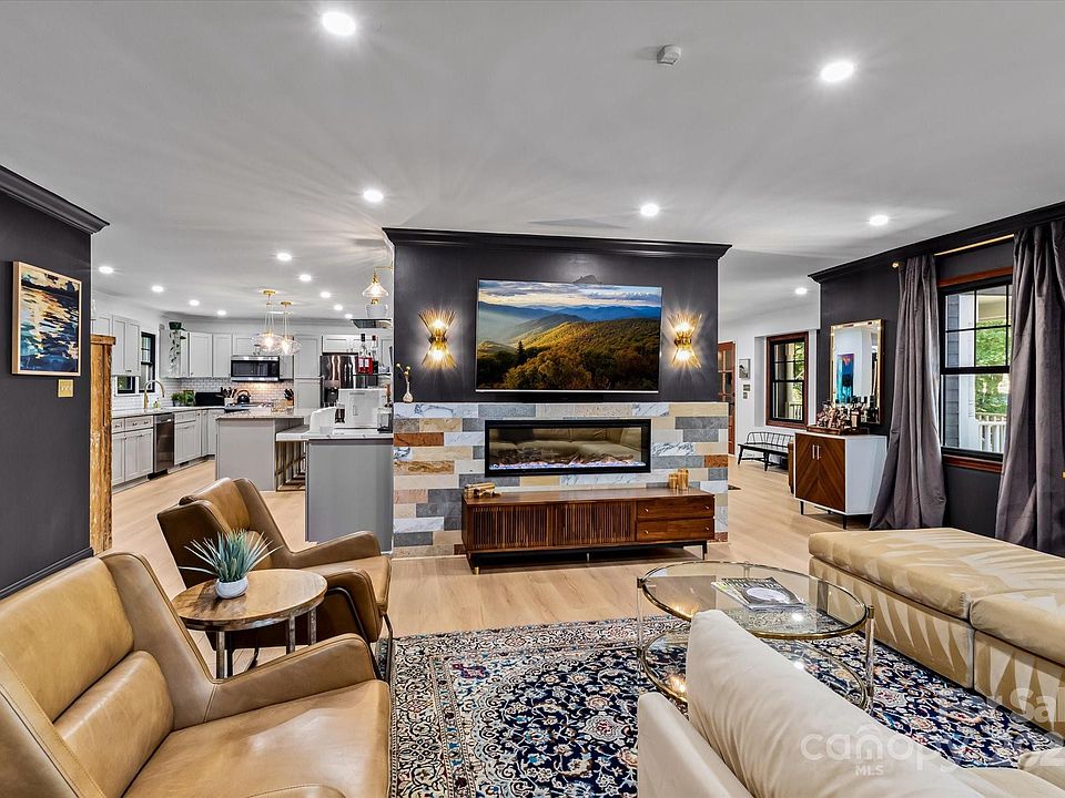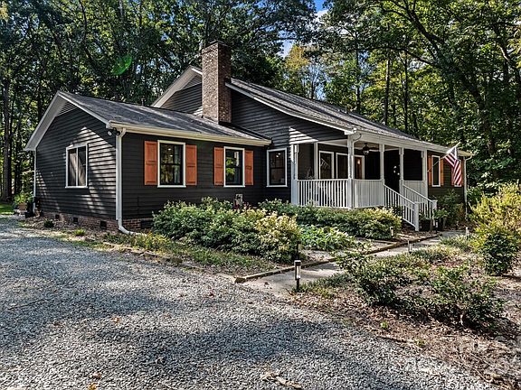 Welcome home to a masterfully curated home that is nestled on 3 wooded acres in Mint Hill. Offering privacy, artistry, and custom designer finishes; this property is a rare sanctuary inside the 485 loop. This 5BR, 3BA home with a 2-car detached garage (with commercial-grade Polyurea flooring) features 3 fireplaces (wood, gas & electric) and tasteful upgrades throughout: Fully finished 2-car garage (2024), Monotech Monolithic hardwood floors (new Sept 2025), architectural shingle roof (2023), triple-pane windows (2022), and Mahogany doors (2022). The main-floor primary suite is an escape of its own with the private entrance to a secluded hot tub deck with Massaranduba Brazilian hardwood decking and a Caldera Seychelles 7-person saltwater spa. Distinctive finishes elevate every space for even the most discerning of buyers - ancient reclaimed Mediterranean stone, travertine grilling patio, imported wallpapers, and designer lighting. All this with NO HOA! See the Special Features sheet for more upgrades and improvements!