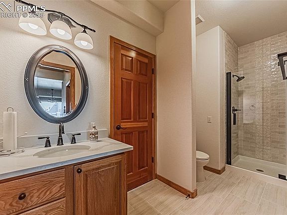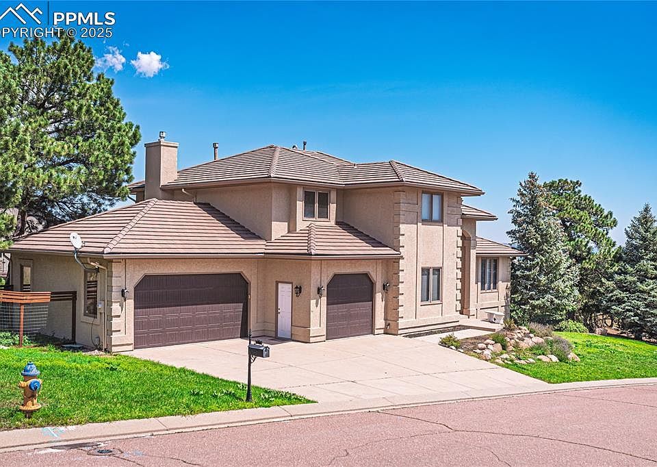 Freshly painted inside, see new light and bright photos. Situated at the top of Mountain Shadows and only minutes away from schools, shopping and miles of scenic hiking and biking trails at Ute Valley Park, you'll be sold the minute you arrive as the impressive entry welcomes you and sets the stage for your walk through the beautifully laid out main level that includes perfectly sized formal Living & Dining Rooms, a cozy Family Room with walkout access to three outdoor entertainment spaces (two decks & a stamped concrete patio), and a beautiful and functional Office that could easily convert to a main level bedroom. You'll never lack storage or work space in the spacious Kitchen; ample cabinetry and granite countertops are just the start of a functional space that also offers a cozy Dining Nook, built in desk with mail organizer, stainless steel appliances and pantry closet. Rounding out the main level is the laundry/mud room entry from the spacious three car garage that measures almost 900 square feet. The Master Bedroom is truly a retreat with a 9'x9' walk-in closet, five-piece modern bath and the ability to enjoy a good book or cup of coffee by the three-sided fireplace that separates the bedroom area from a separate sitting area, all with views of the city and mountains. The renovated Jack and Jill bathroom creates a great use of space between the two spacious secondary bedrooms on the upper level. And when it's time to play, the light and bright walk out basement provides more than enough space to be set up as a game room, theater room, craft room or anything else you may desire, only steps away from the lower level deck.