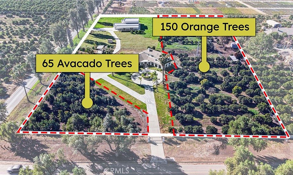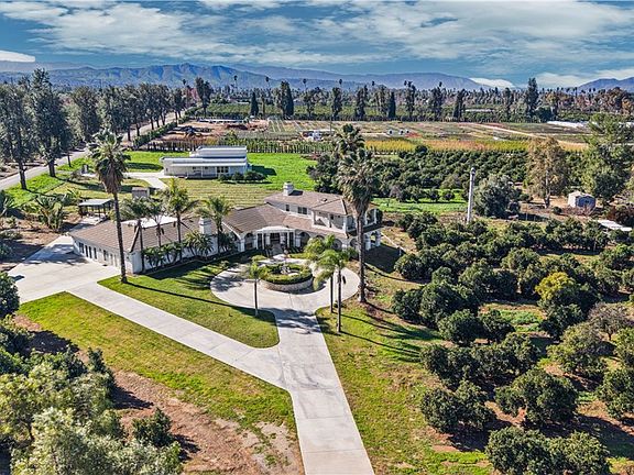 Welcome to this exceptional private estate featuring a stunning main residence built in 2000, offering 8 bedrooms and 7.5 bathrooms with generous living spaces designed for comfort and functionality. Complementing the main home is a separate single-story guest house built in 2022, complete with 3 bedrooms and 3 bathrooms, ideal for extended family, guests, or multigenerational living. Situated on a sprawling 4.78-acre lot, the property boasts an impressive variety of mature, producing fruit trees, including approximately 150 orange trees, 60 avocado trees, 9 banana trees, as well as lemon, peach, dragon fruit, mango, apple, and persimmon trees. The agricultural trees are irrigated through The Gage Canal, adding significant long-term value and efficiency. The estate is exceptionally well suited for a large family compound, or potential use as a home care or daycare facility (buyer to verify all permitted uses with the city). Additional highlights include ample parking, RV and boat storage, and a fully fenced perimeter with automatic front gate, providing privacy, security, and convenience. Ideally located near the 91 Freeway and just minutes from Galleria at Tyler, Albertsons, Kaiser Permanente, and California Citrus State Park, this rare offering combines space, versatility, and location. Priced to sell—this is a truly rare opportunity with immense potential. Don’t miss it.