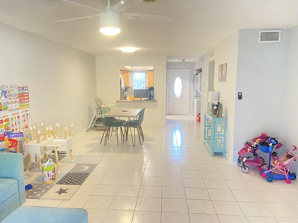 Nice, spacious villa, end unit with covered, screened patio + private fenced in back yard. Tiled thru with dark wood laminate in bedrooms. Low HOA maint. includes water, roof & lawn service, no age restrictions, pet friedly, close to Elementary school, shopping mall, I-95 & Calossa park, Won't last!!!