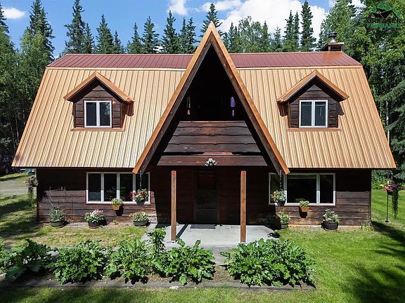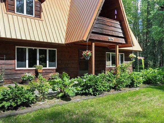 Discover this charming Swiss Chalet-style home nestled on 4.65 secluded acres with slough frontage and ready access to trails for outdoor adventure opportunities. It combines classic design with modern comforts, featuring vaulted ceilings, custom woodwork, stained glass windows, a wood stove, three bedrooms, two bathrooms, and an oversized two-car garage at approximately 990 sq/ft. Located in North Pole, AK, you'll have access to both natural beauty and city amenities, making this home the perfect blend of convenience and wilderness. Don't miss this opportunity to make it yours.
