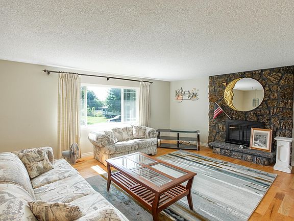 Looking for mid sized lot with NEW VINYL SIDING just minutes from town? Look no further! This 4 bed 2 bath well taken care of home is bright with natural light a spacious living and kitchen area. There are two bedrooms upstairs and two bedrooms downstairs. The main floor boasts beautiful wood floors, abundant cabinet and counter space in the kitchen and eat-in kitchen nook and wood fireplace. The basement has extra storage and room to create your own family room space. It also connects to the garage. Off the kitchen is a spacious covered deck that overlooks the mature and treed backyard and even has a view of the mountains. The backyard is private and fully fenced, with fruit trees and berry bushes. Make an appointment today!