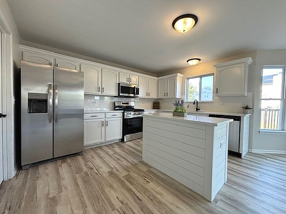 This newly renovated 4 bedroom 2/2 bath with a fully finished basement is the home you have been waiting for. As you walk up the front steps and through the cozy front porch, you'll enter the home and admire the hardwood floors in the family room that leads to the large living room. Adjacent to the living is a beautiful modern kitchen with white cabinets, brand new Quartz countertops, all new stainless-steel appliances, island for prepping/serving and an eating area with a sliding door that takes you out to the brand-new cedar deck. A great space to entertain and relax! Upstairs you will find a grand master on-suite with a generous size walk-in closet. The three remaining bedrooms share a full bath with a tub/shower combo. All bathrooms were recently updated featuring Quartz countertops. The full finished basement with half bath will be the ultimate space for a kid's playroom, mancave, home office, workout space or whatever suits your needs best. Fresh paint and carpet throughout the entire home. Brand new HVAC. Oversized 3 car garage with new epoxy flooring. Fenced in backyard. This home has it all! Don't miss your chance to come view today!